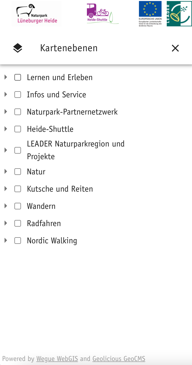 - Symbolische Layer-Darstellung: Das Kartenmenü enthält individualisierte Symbole für Layer, die gleichzeitig als Legende fungieren – für eine intuitive Bedienung und klare Orientierung.